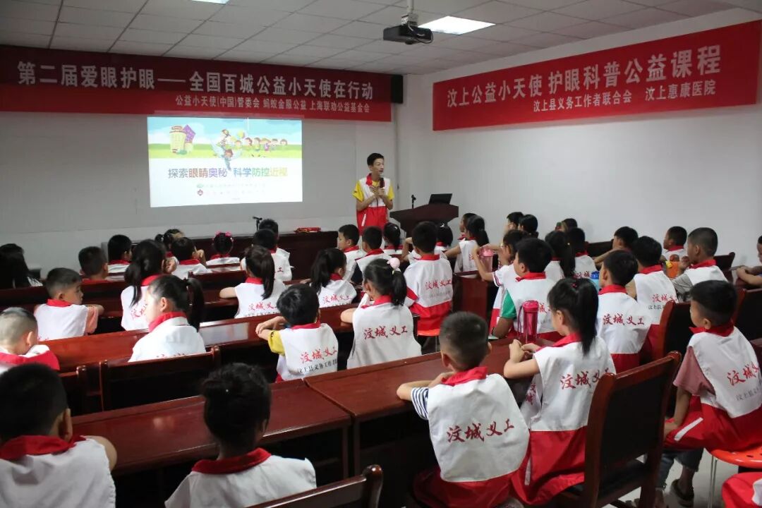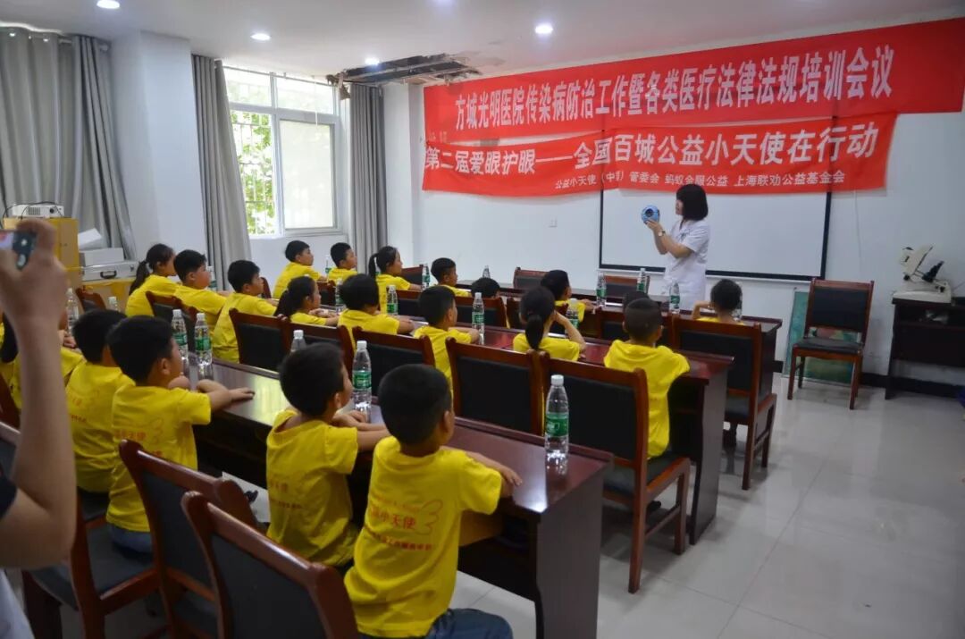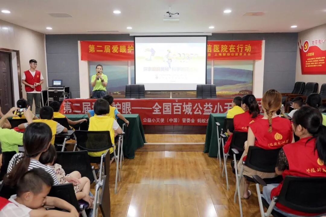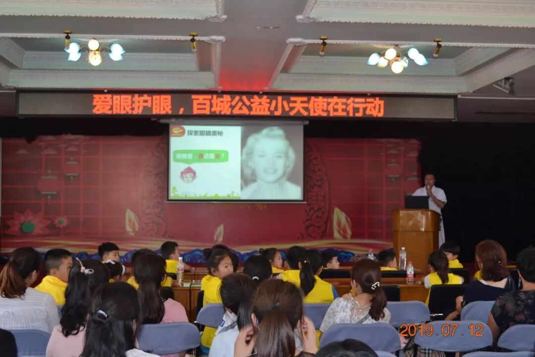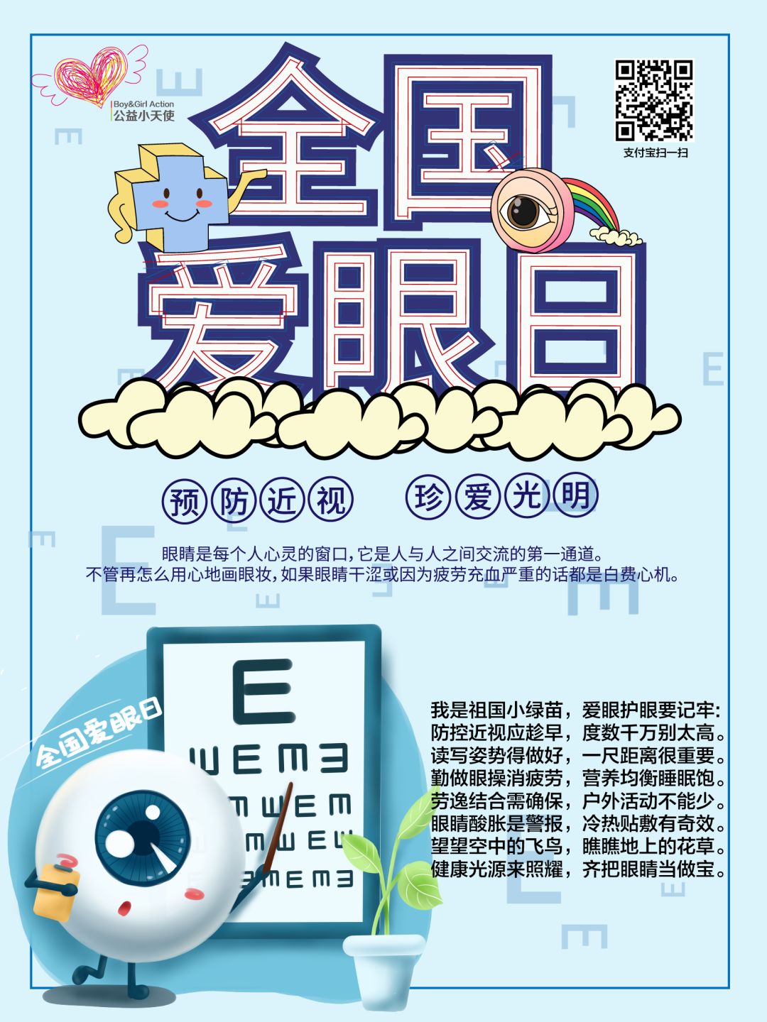 在国家卫健委2019年4月29日举行的新闻发布会上,国家卫健委疾控局副局长张勇指出,2018年全国儿童青少年总体近视率为53.6%。其中,6岁儿童为14.5%,小学生为36.0%,初中生为71.6%,高中生为81.0%,近视防控任务艰巨。 2018年下半年,国家卫健委会同教育部、民政部组织开展了2018年全国儿童青少年近视调查工作。本次调查共覆盖了全国1033所幼儿园、3810所中小学校,总筛查111.74万人,包括幼儿园儿童6.92万,各年龄段中小学生104.82万。 眼睛是我们认识世界,学习知识,相互交流的重要窗口。如果我们失去了明亮的眼睛,我们的世界将是黑暗的世界。视力的减弱,会给我们的学习和生活带来许多的不便。 在今年七月份时间, 我们通过“爱眼护眼”行动是给孩子们上《探索眼睛奧秘科学防控近视》、《大话西游之猴子校园历险记》护眼亮眼工程的科普的公益课程,让孩子们感受到眼睛的重要性,关爱自己的身体健康。 我想与你一起 保护眼睛 爱眼歌 我是祖国小绿苗,爱眼护眼要记牢: 防控近视应趁早,度数千万别太高。 读写姿势得做好,一尺距离很重要。 勤做眼操消疲劳,营养均衡睡眠饱。 劳逸结合需确保,户外活动不能少。 眼睛酸胀是警报,冷热贴敷有奇效。 望望空中的飞鸟,瞧瞧地上的花草。 健康光源来照耀,齐把眼睛当做宝。 最后我们感谢中国校园健康行动护眼亮眼工程、中国公益小天使各地伙伴、各地的合作单位(眼科医院),同时支持我们活动的蚂蚁金服公益和上海联劝公益基金会。